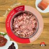Made with 100% Beef, Salmon Fillet and nothing else, our mince has a great texture that dogs love, super fresh made from frozen material not defrosted ensures our beef smells great, tastes great, looks great